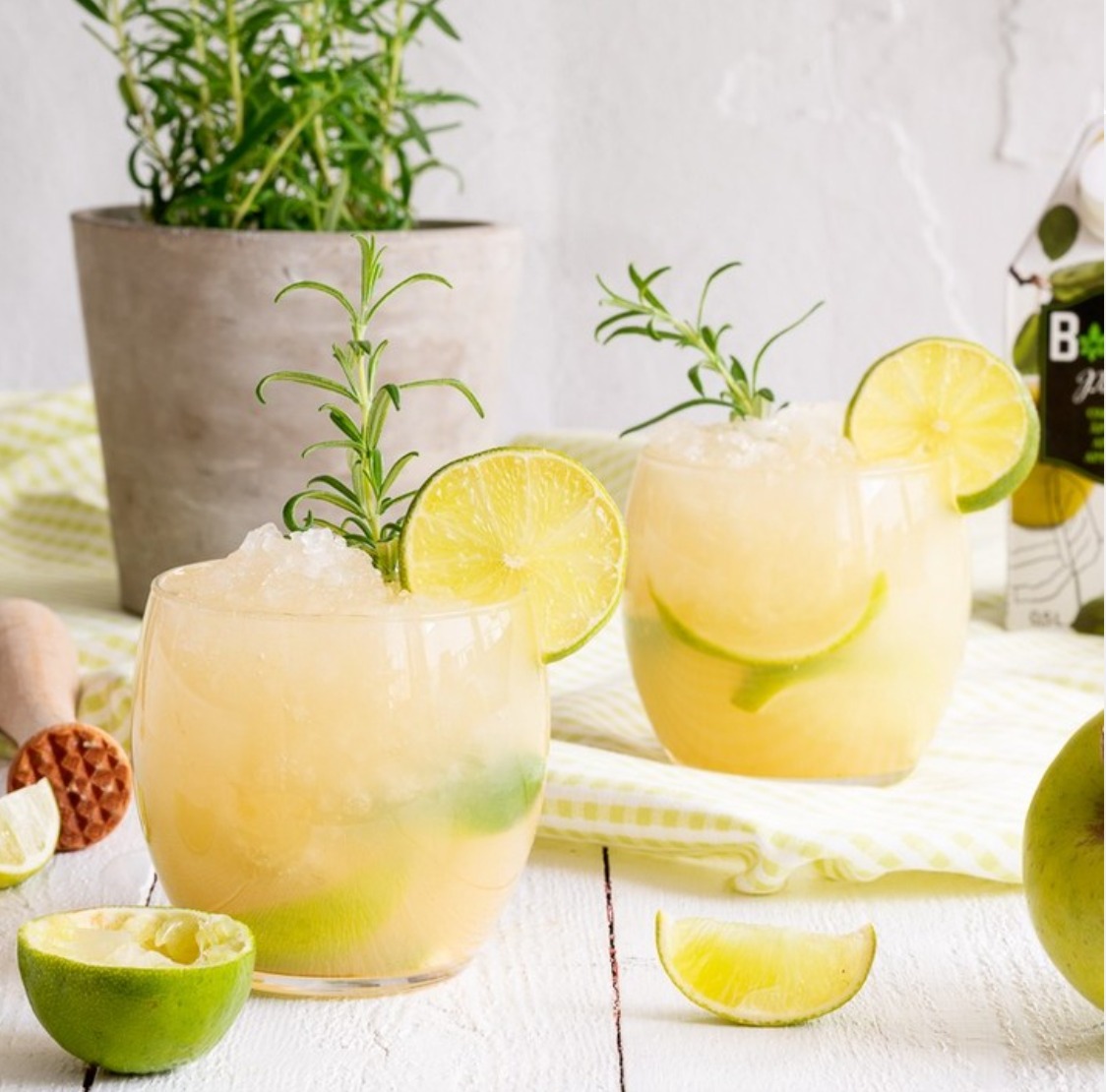- Measure the Bonne Premium Lingonberry Purée, lemon juice, juniper berry syrup, juniper berries, rosemary, and ice cubes into a shaker and shake well.